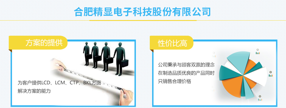 ?合肥精顯電子科技股份有限公司成立于2012年,由液晶行業(yè)知名企業(yè)廈門(mén)精顯電子有限公司投資建設(shè),是一家研發(fā)、生產(chǎn)、銷(xiāo)售高品質(zhì)液晶屏(LCD)、液晶顯示模塊(LCM)、背光(LED)、電容式觸摸屏(CTP)等節(jié)能環(huán)保產(chǎn)品并能為顧客提供解決方案的高新科技企業(yè)。 ?公司占地55畝,擁有建筑面積超過(guò)20000平米和潔凈廠房5400平米。 ?公司擁有一個(gè)超過(guò)15年以上LCD行業(yè)運(yùn)營(yíng)制造經(jīng)驗(yàn)的團(tuán)隊(duì)。 ?公司獲得研發(fā)專(zhuān)利20余項(xiàng)。 ?公司通過(guò)C-TPAT認(rèn)證,ISO9001:2008認(rèn)證,產(chǎn)品通過(guò)了ROHS、REACH。 ?我們產(chǎn)品廣泛應(yīng)用于智能儀表(水表,電表,氣表)、家電、儀器儀表、計(jì)量器械、文教 器具、UPS電源、智能手機(jī)機(jī)、平板電腦等電子產(chǎn)品的顯示和控制。目前我們已樹(shù)立了良好的品牌形象,并與眾多公司(如GE, Ja...